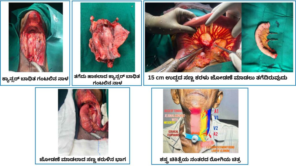 ಈ ಅಪರೂಪದ ಶಸ್ತ್ರ ಚಿಕಿತ್ಸೆ ಮೇ ತಿಂಗಳಲ್ಲಿ ನಡೆದಿದ್ದು, ಈ ಮಹಿಳೆಯ ಗಂಟಲು ಭಾಗದಲ್ಲಿ ಕ್ಯಾನ್ಸರ್ ಖಾಯಿಲೆ ಕಾಣಿಸಿಕೊಂಡಂತಹ ನಾಳವನ್ನು ಸುಮಾರು 15 CM ನಷ್ಟು ಸಂಪೂರ್ಣವಾಗಿ ತೆಗೆದುಹಾಕಲಾಗಿದ್ದು, ಹಾಗೂ ಆ ತಗೆದು ಹಾಕಲಾದ ಗಂಟಲು ನಾಳದ ಭಾಗಕ್ಕೆ ಸಣ್ಣ ಕರುಳಿನ ಭಾಗವನ್ನು ಯಶಸ್ವಿಯಾಗಿ ಶಸ್ತ್ರ ಚಿಕಿತ್ಸೆಯ ಮೂಲಕ ಜೋಡಣೆ ಮಾಡಲಾಯಿತು. ಇದರಿಂದ ಸಂಪೂರ್ಣವಾಗಿ ಕ್ಯಾನ್ಸರ್ ಖಾಯಿಲೆಯು ಗುಣ ಹೊಂದಿರುವುದು ಕಂಡುಬಂದಿರುತ್ತದೆ ಮತ್ತು ಈ ಮಹಿಳೆಯು ಎಂದಿನಂತೆ ಯಾವ ಅಡೆ ತಡೆಗಳು ಇಲ್ಲದೆ ಆಹಾರ ಸೇವನೆ ಮಾಡುತ್ತಿದ್ದು ಹಾಗೂ ತನ್ನ ದಿನ ನಿತ್ಯದ ಚಟುವಟಿಕೆಗಳನ್ನು ಯಾವ ತೊಂದರೆ ಇಲ್ಲದಂತೆ ನಡೆಸುತ್ತಿರುವುದು ಸಂತೋಷದ ವಿಚಾರವಾಗಿದೆ.